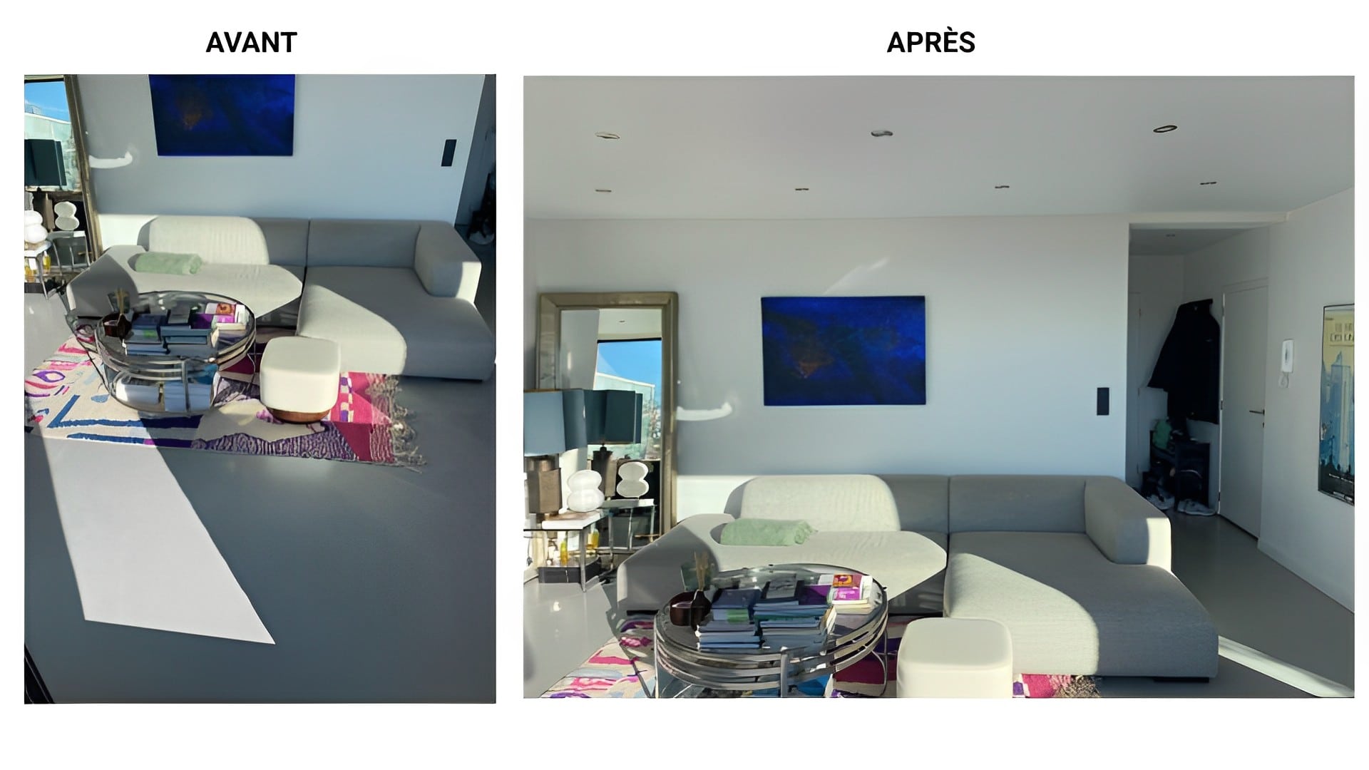 Si votre smartphone dispose d’une fonction grand angle, utilisez là. Votre pièce paraîtra plus grande. Attention de ne pas mettre le grand-angle au maximum.